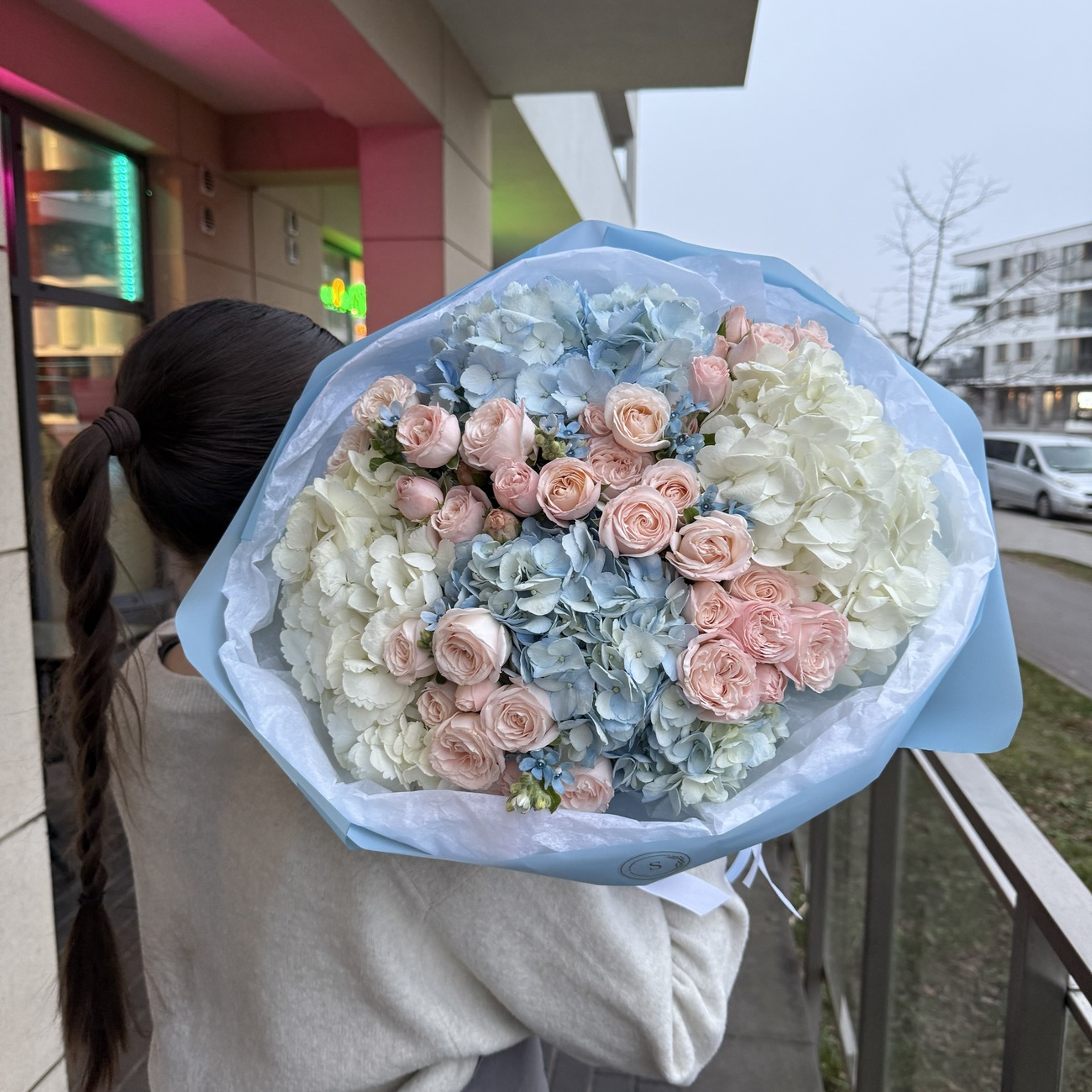 We remind you that each bouquet and composition are unique, and may differ slightly from the example in the photo in shade, shape and configuration. But rest assured, your composition will be no less delightful and beautiful!
