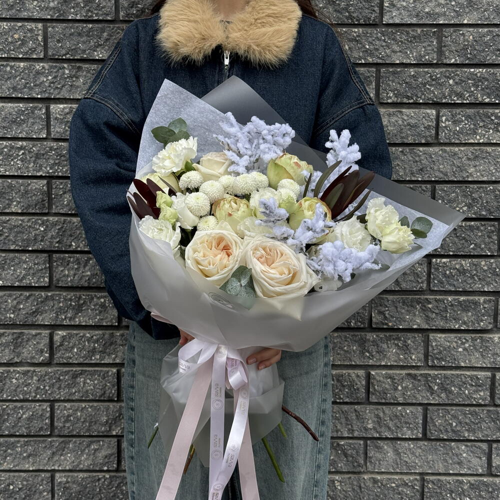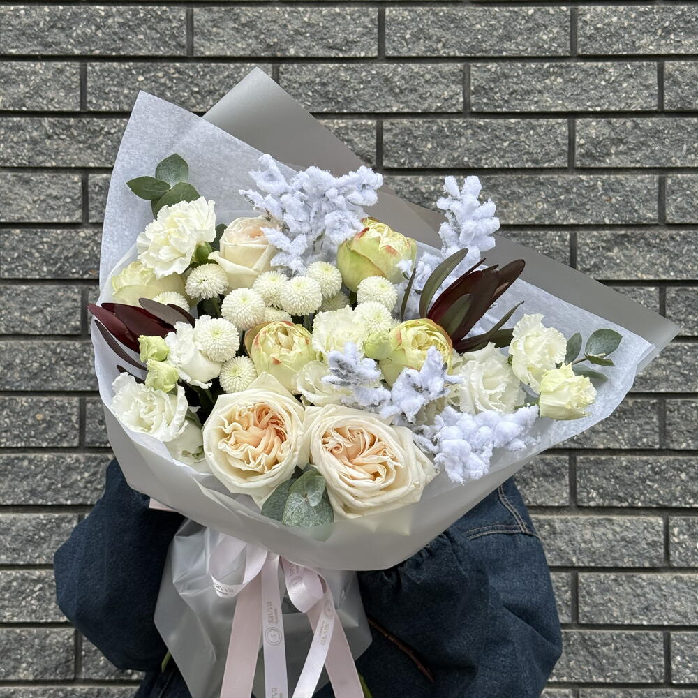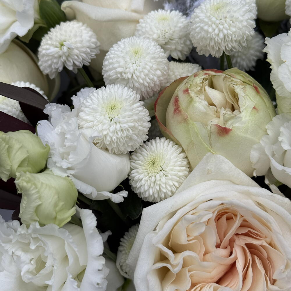 Напоминаем, что цветы и композиция может немного отличаться от примера на фото по оттенку, форме, комплектации. Но не переживайте, ваша композиция будет не менее красивой!